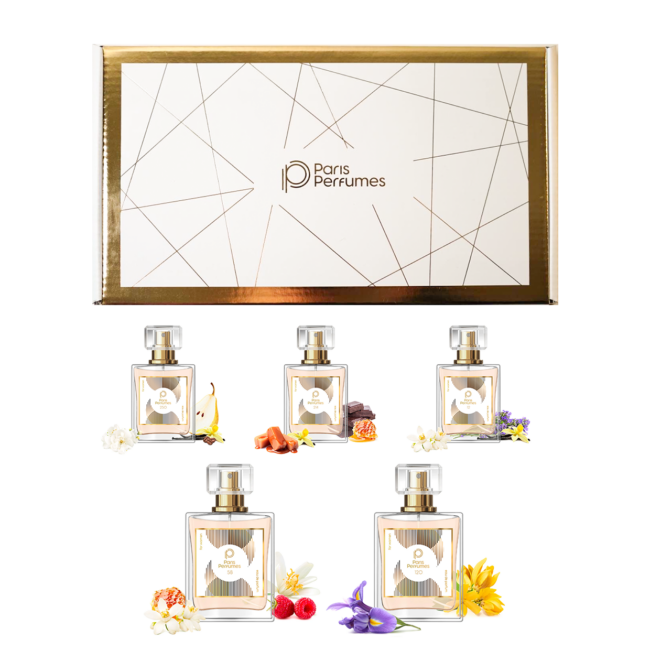 Pasinerkite į rafinuoto grožio pasaulį su „Paris Perfumess“ rinkiniu Golden Lady. Penki unikalūs kvapai, įkvėpti parfumerijos ikonų, yra pasiūlymas moterims, kurios mėgsta prabangą, pasitikėjimą savimi ir eleganciją. Kiekvienas iš šių kvapų atspindi unikalias emocijas – nuo nesenstančios klasikos iki šiuolaikinio jausmingumo.Ką rasite rinkinyje?